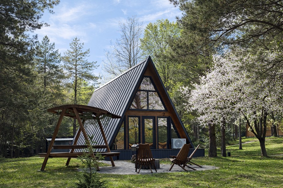 Домики не перегружены деталями. В них нет лишнего. Только свет, дерево, воздух и пространство. Всё устроено так, чтобы Вы могли сразу расслабиться, не привыкая и не адаптируясь.